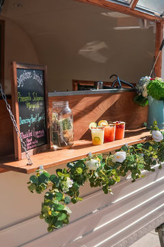 You can book our beautiful camper or gorgeous stand alone, custom wood bar which can be disassembled and moved into any space.